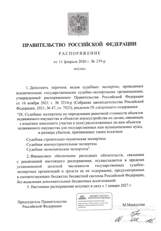 Распоряжение от 11 февраля 2026 г. № 239-р